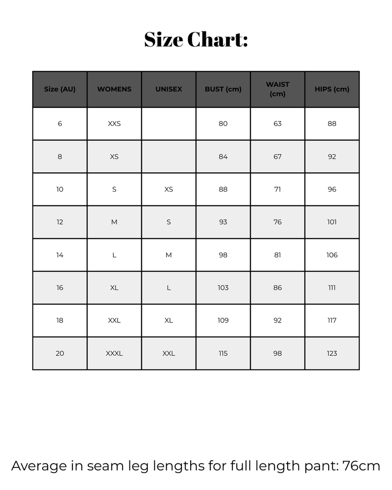 All measurements are in cm. For the best fit, measure yourself and compare to the size chart.